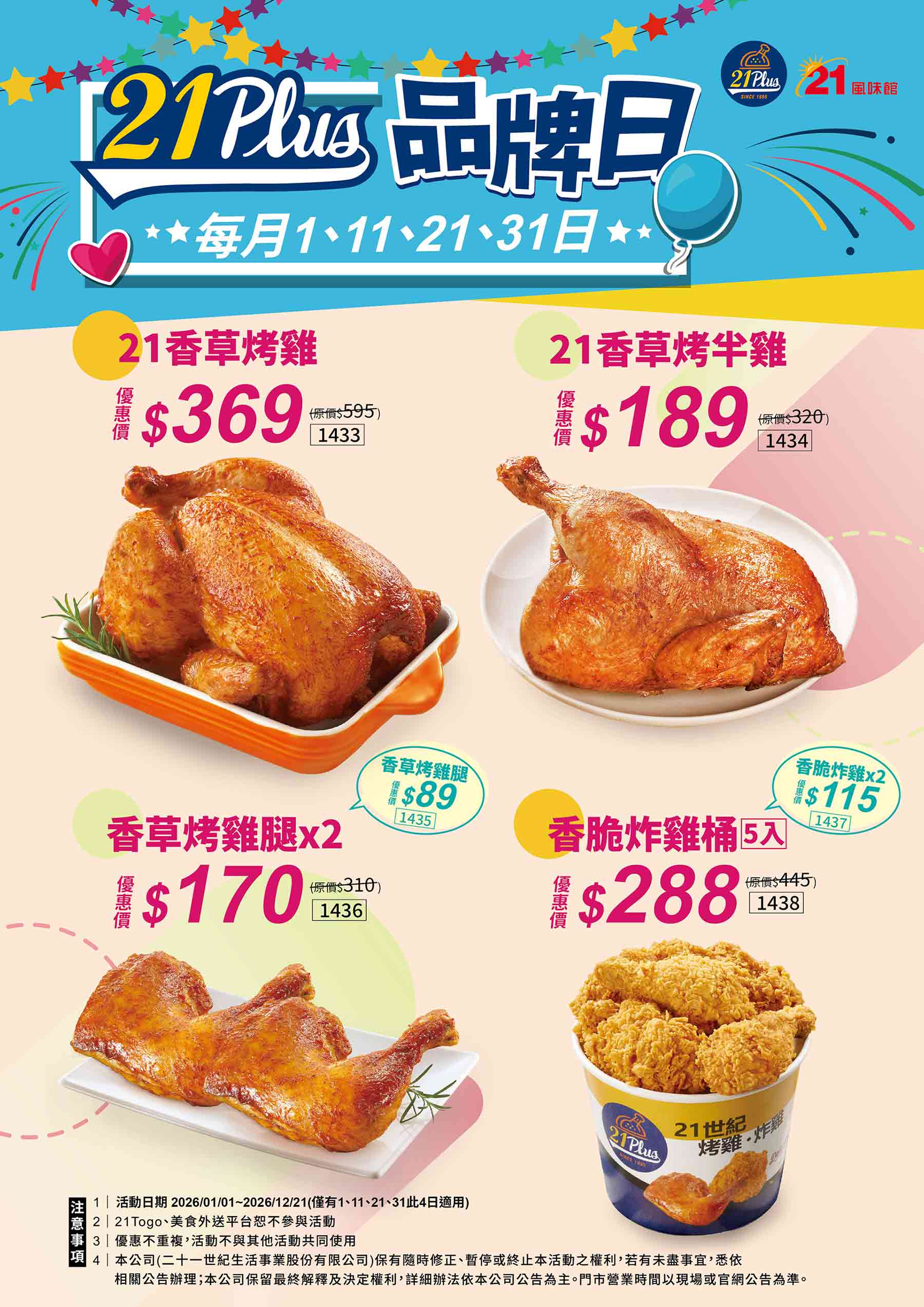 【品牌活動】逢1到21吃烤雞 | 21風味館