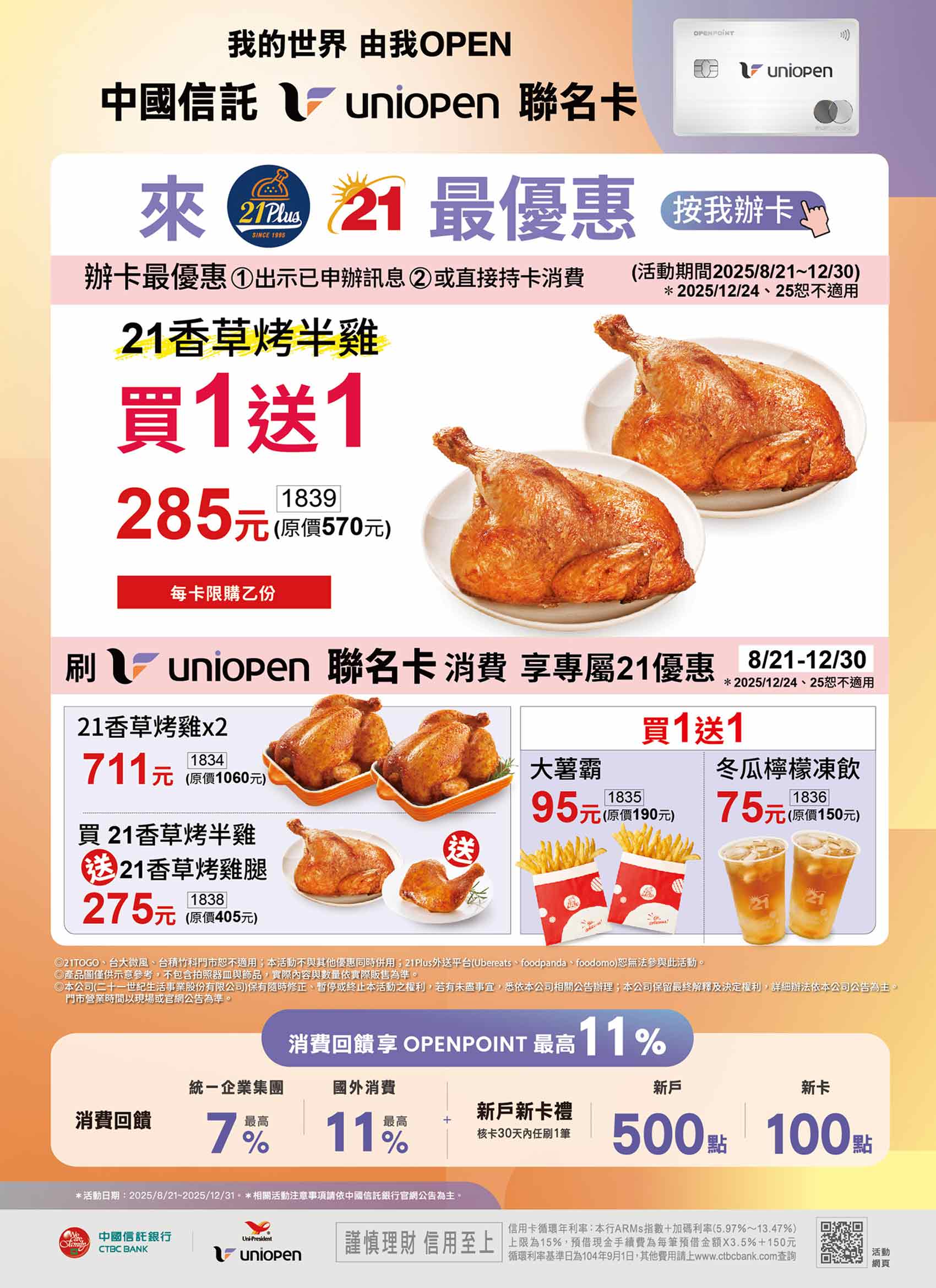 👉 刷 uniopen 聯名卡,21的美味天天都像過節!