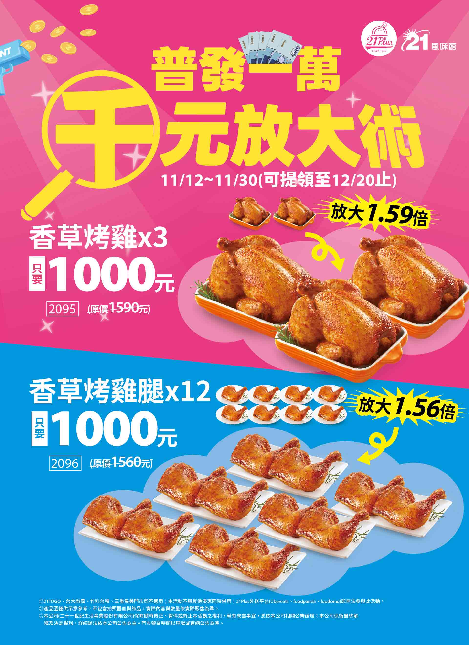 普發一萬怎麼花最划算? 當然是把美味放大1.5倍!😋 21推出「千元放大術」限時優惠👇 🍗 香草烤雞x3 只要$1000(原價$1590) 🍗 香草烤雞腿x12 只要$1000(原價$1560)