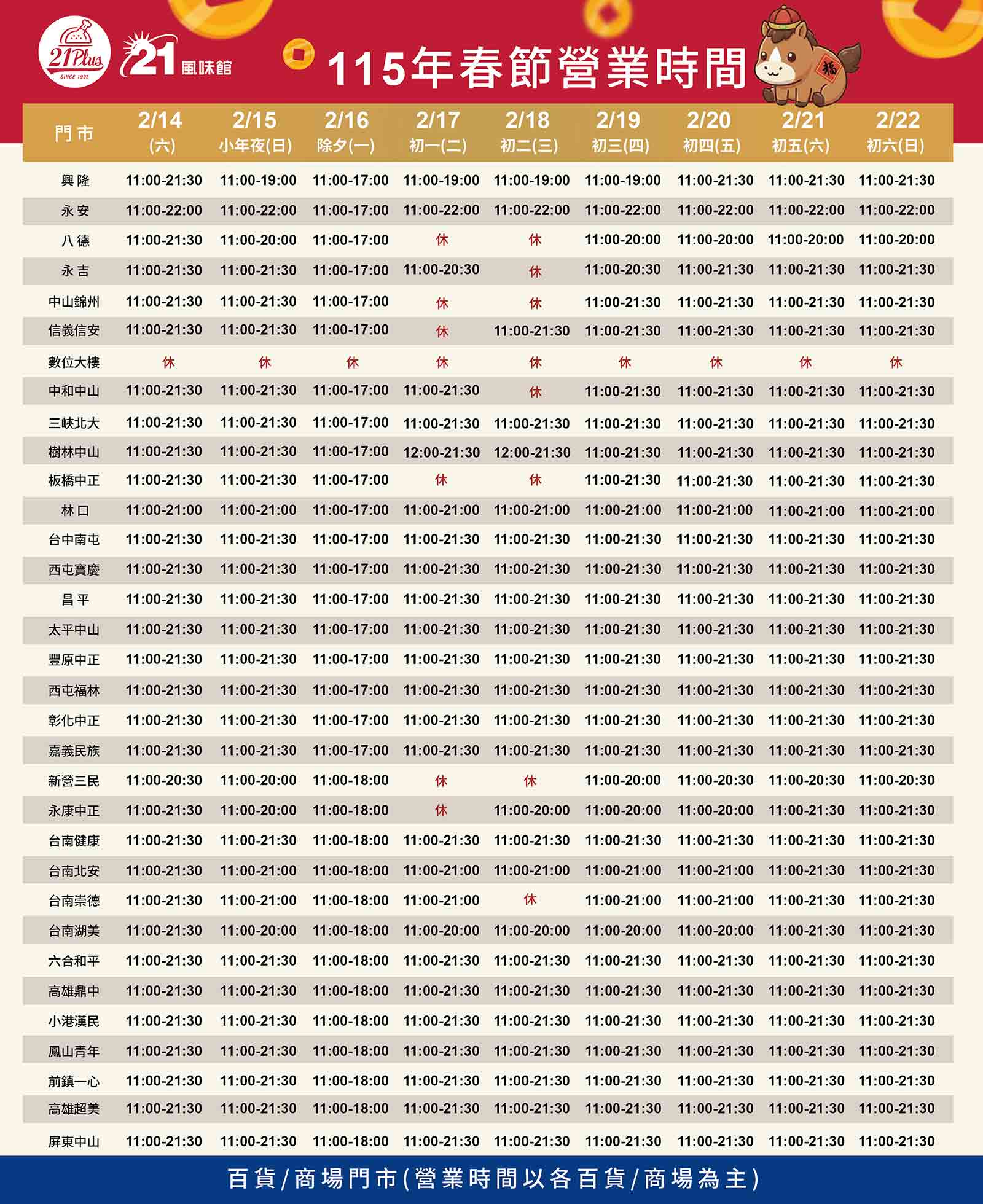 【門市公告】2026農曆春節營業時間 | 21風味館