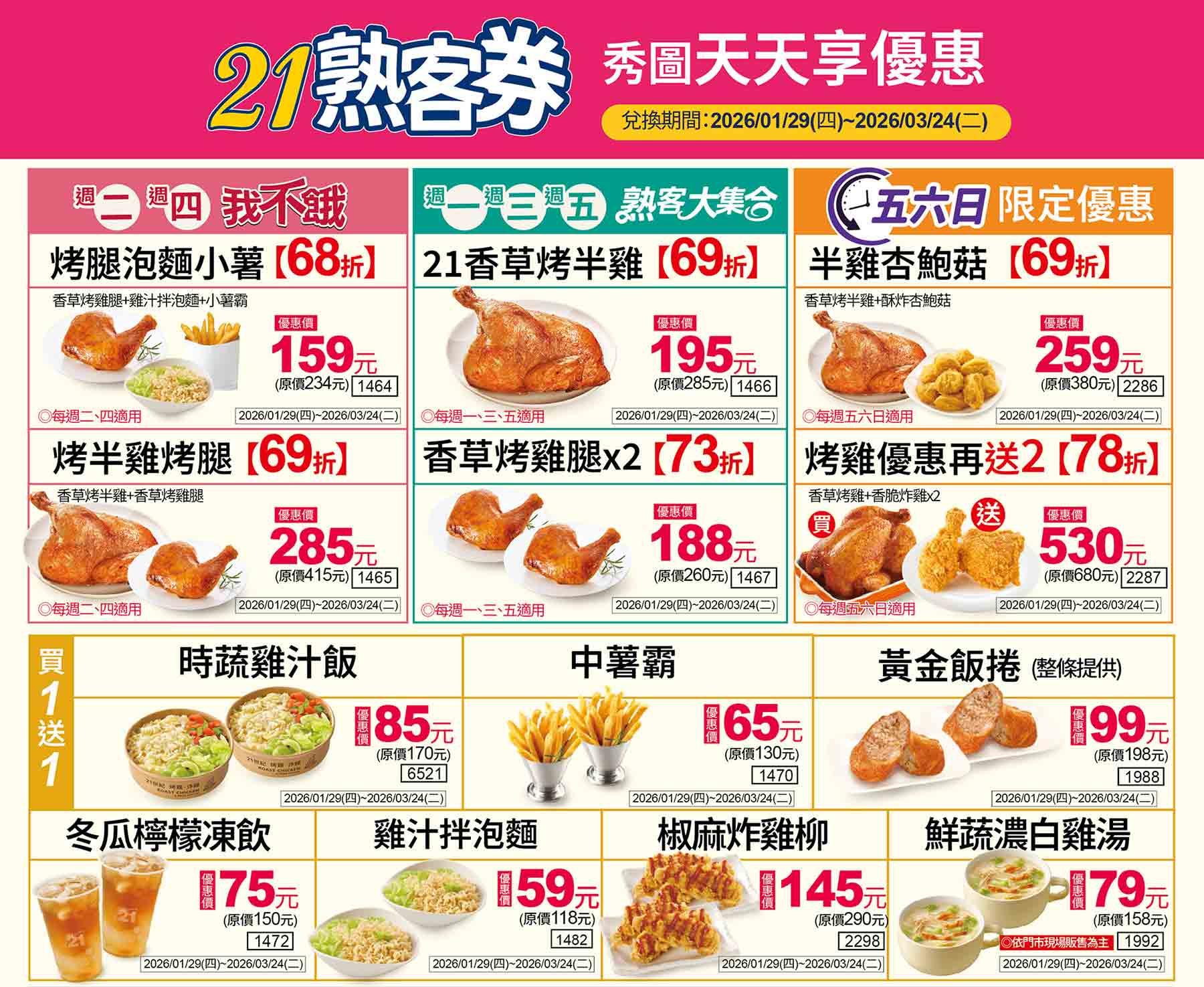 半雞菇菇餐敲碗回歸、香草烤雞買1送2爽爽吃